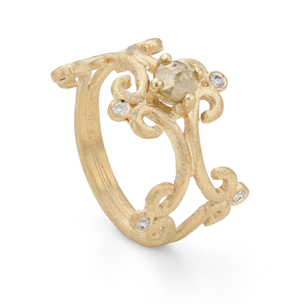 9ct yellow gold ring with brilliant cut salt & pepper and natural grey diamonds